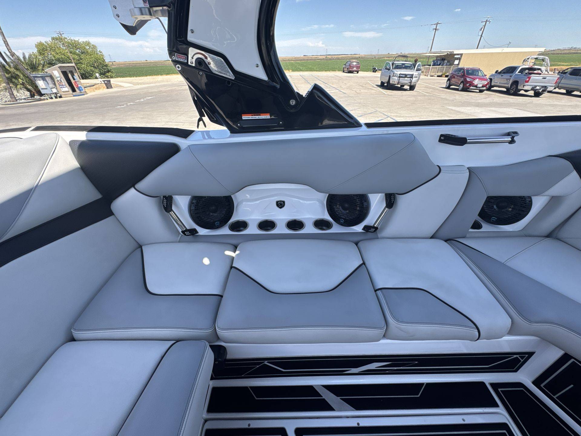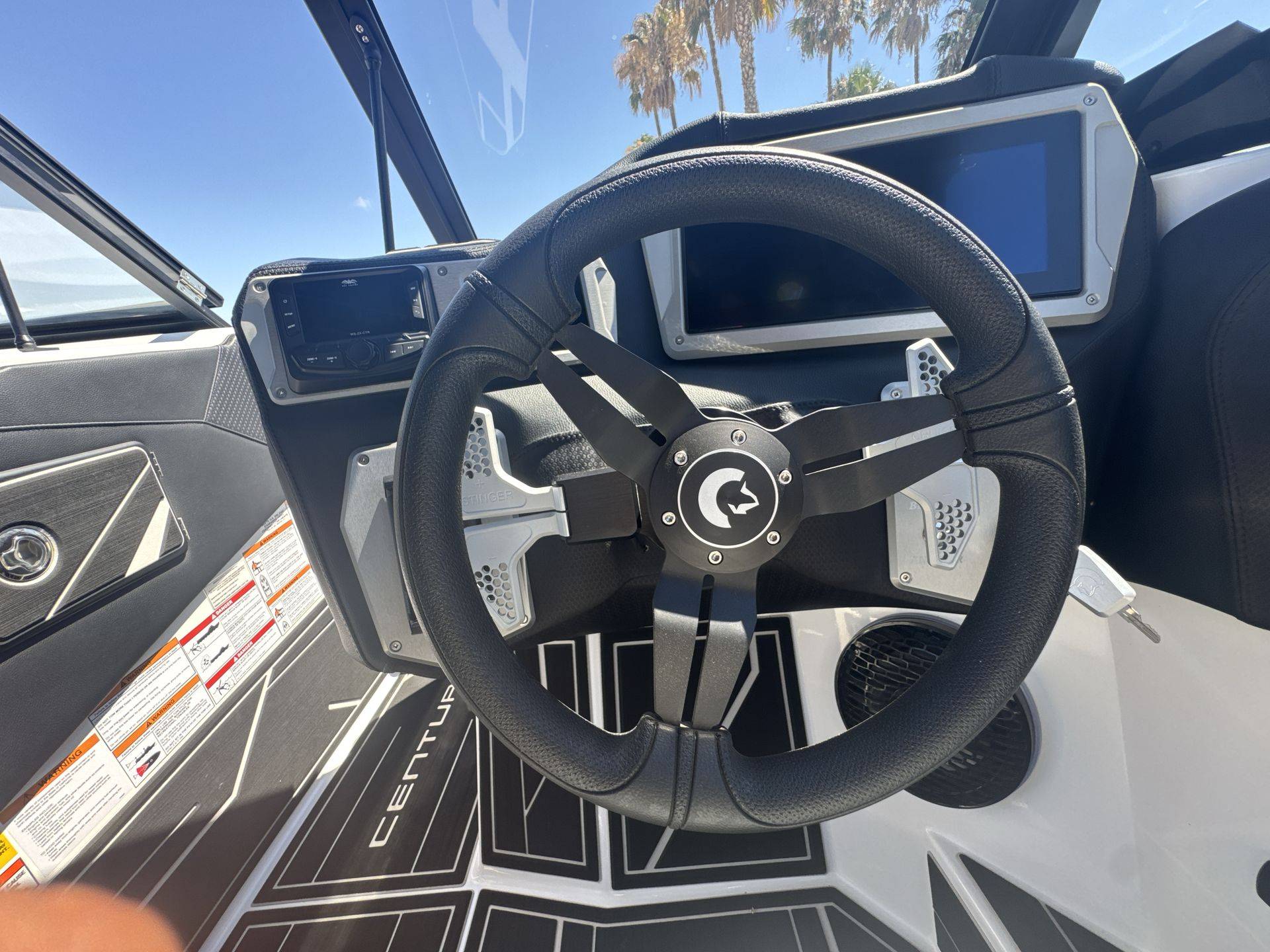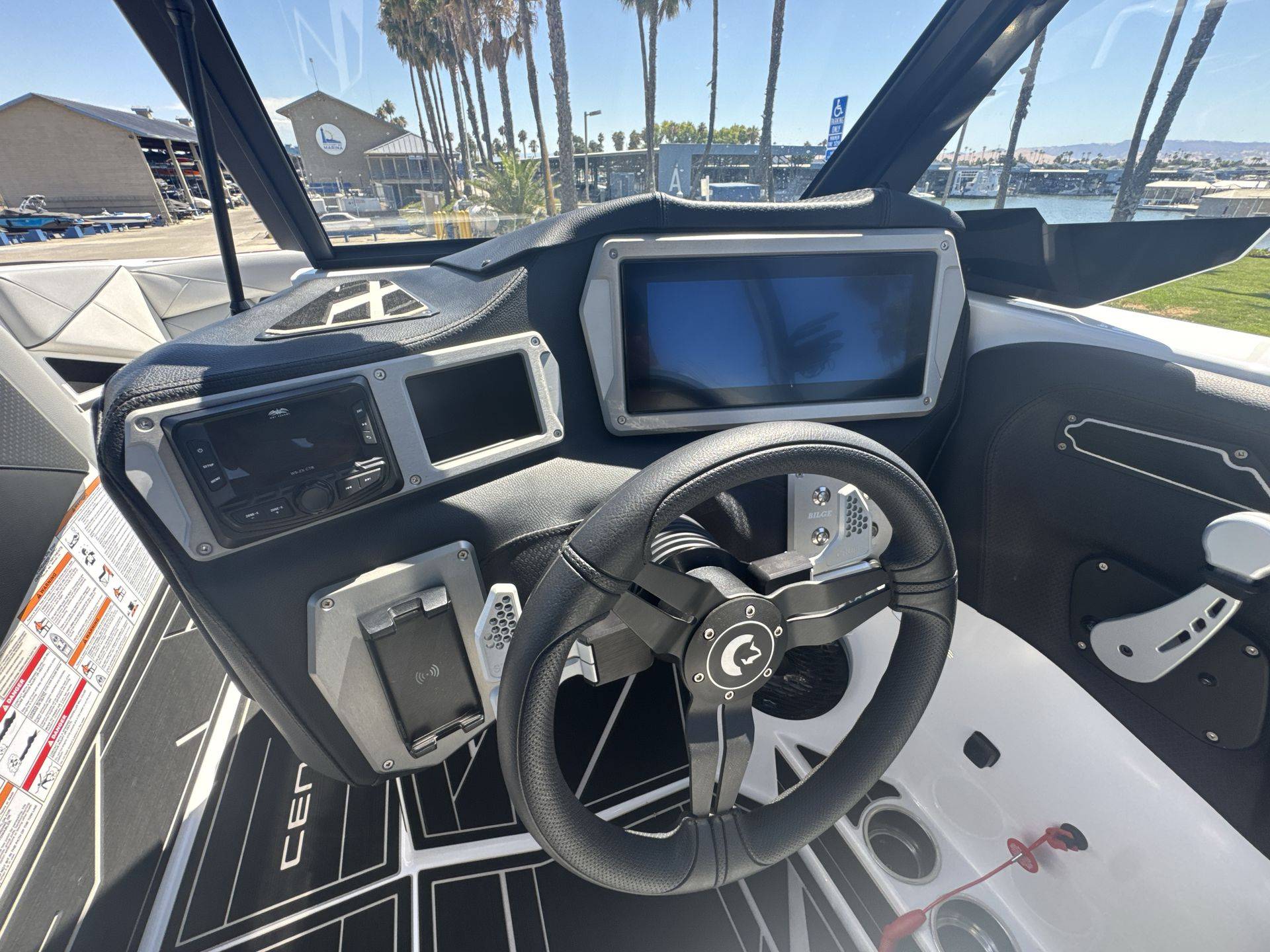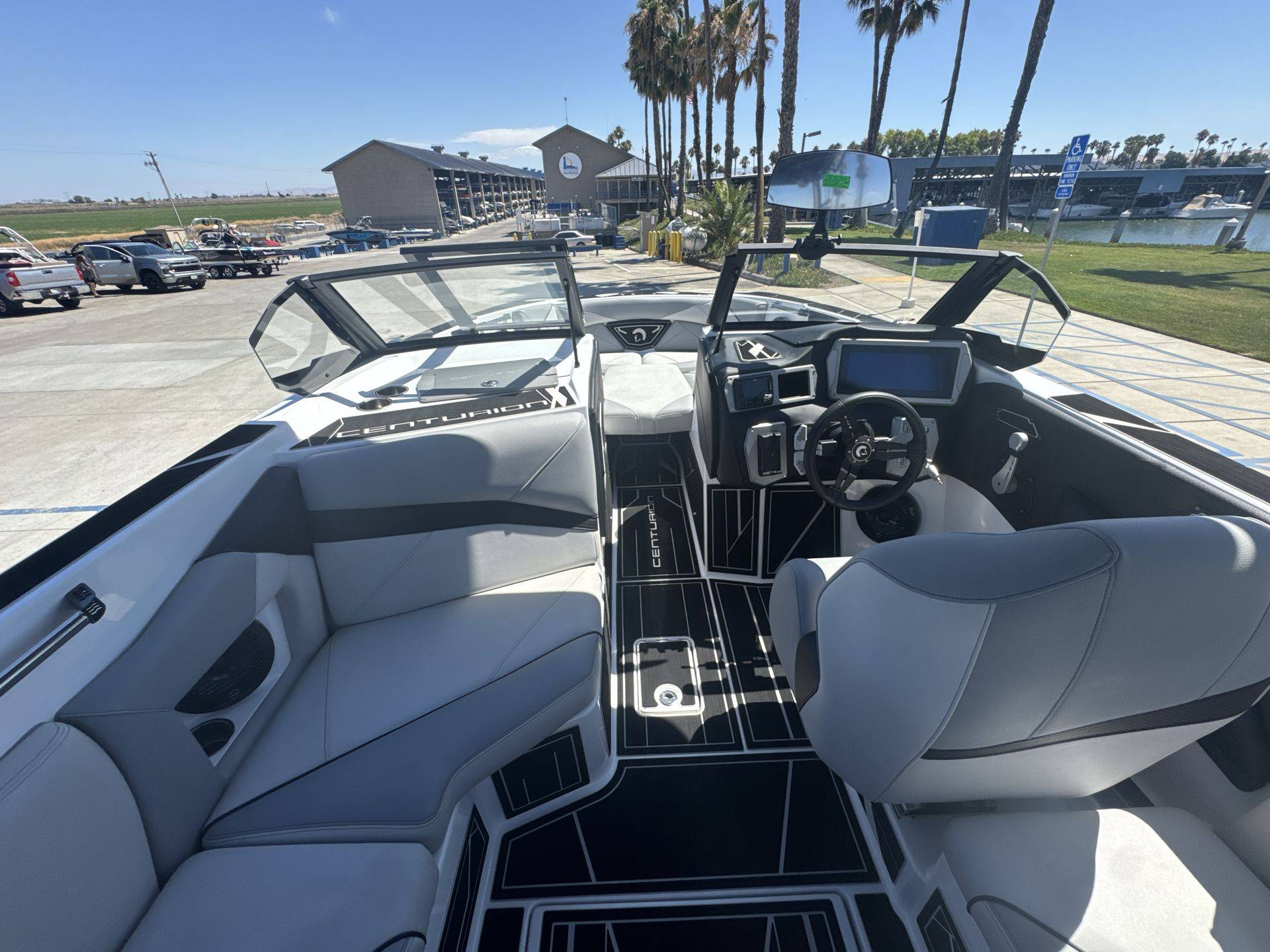 The Nv233 takes it up a notch from the entry Centurion Nv213, with two more feet of length, room for two more passengers and the exotic sports car look that says high performance even when docked. It comes with up to 5000 pounds of available ballast, more than half of which can be filled in 90 seconds with available RAMFILL2. This isn’t a stripped-down version of a more expensive Centurion or an older design dressed-up new, the Nv233 is designed from the water up to deliver precisely what you need to get the most out of your water sports experience. The Nv233 offers world championship caliber surf, with the ability to propel you to your own best performance. Unique to the Nv Series design is the unobstructed GatorStepped space between the tower and the dash that facilitates easy communication directly with a rider – perfect for coaching. An abundance of built-in quality features means the Nv233 comes with everything you need to get on the water and enjoy a great ride from day one, but that doesn’t mean you can’t option up as well. This 23-foot Centurion leaves nothing to be desired except more time on the water.