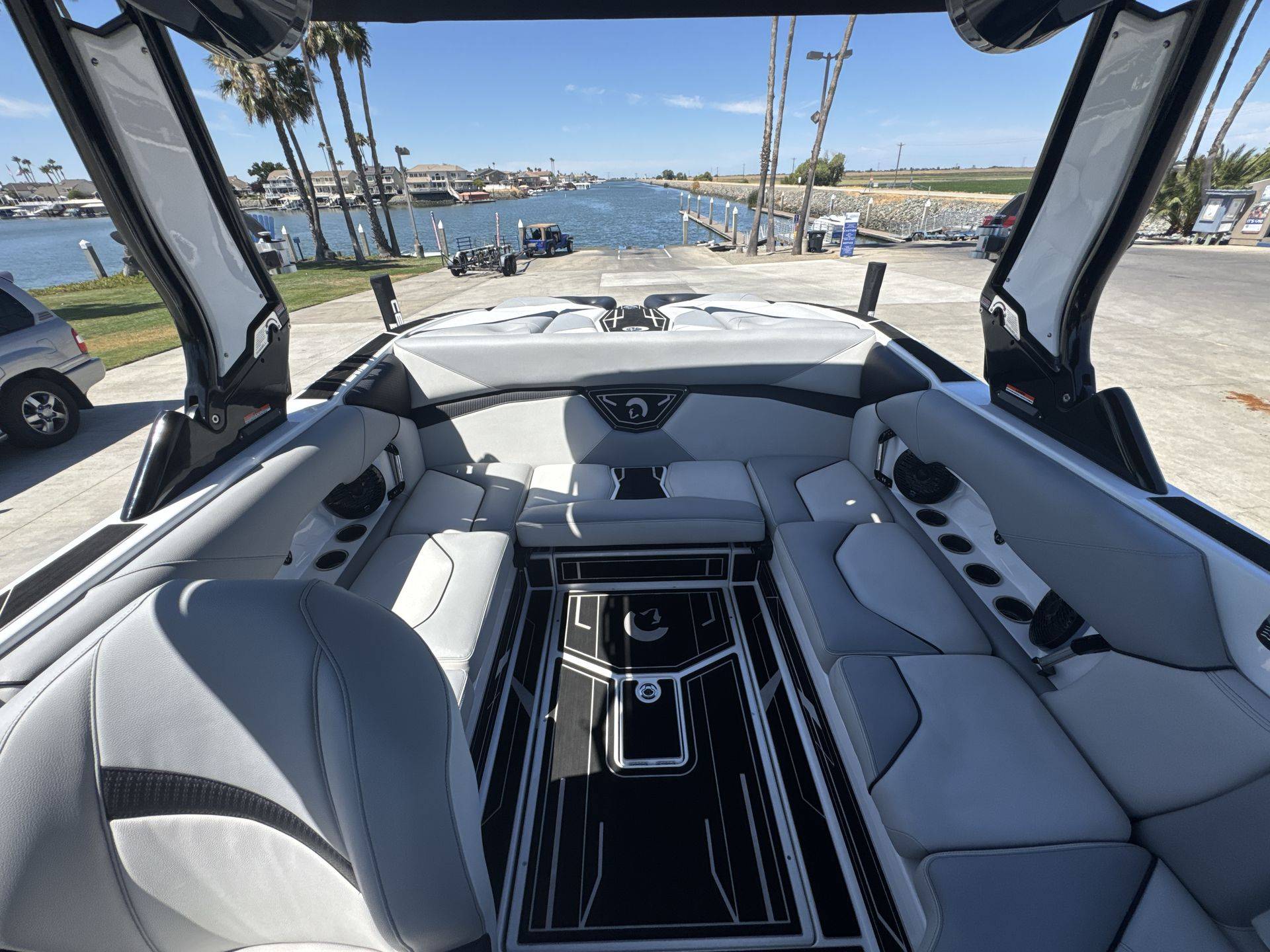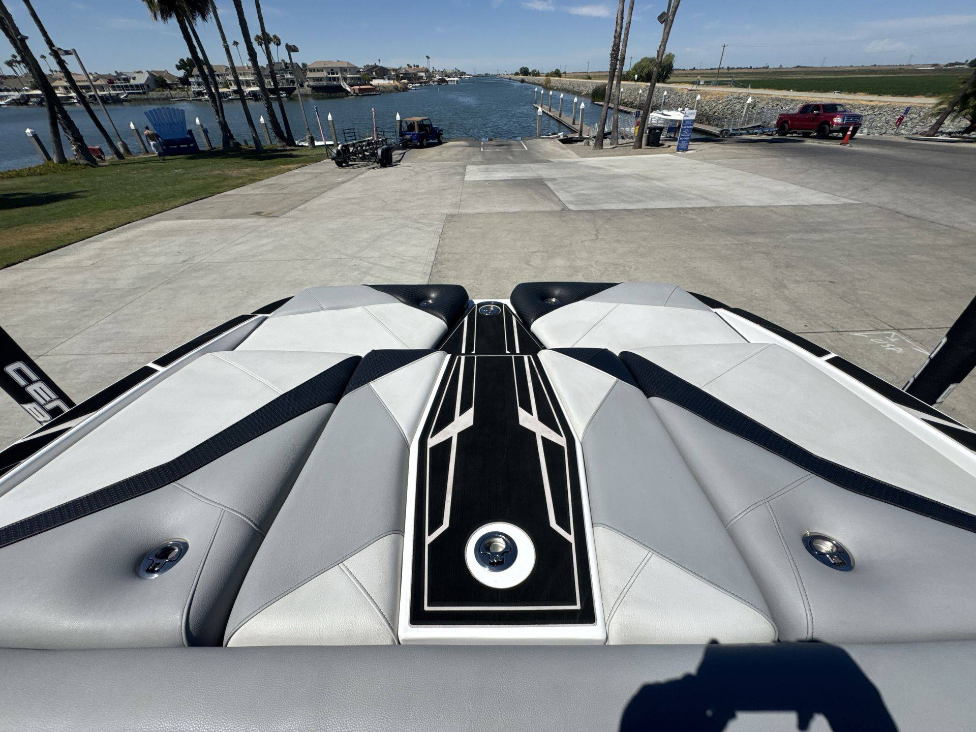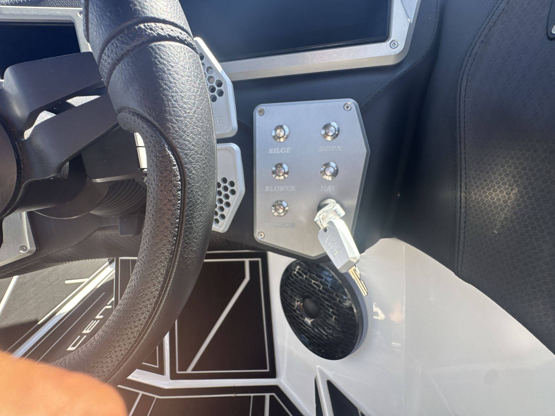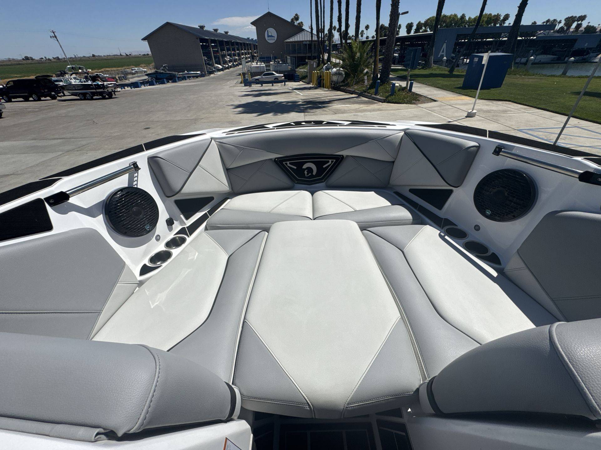 The Nv233 takes it up a notch from the entry Centurion Nv213, with two more feet of length, room for two more passengers and the exotic sports car look that says high performance even when docked. It comes with up to 5000 pounds of available ballast, more than half of which can be filled in 90 seconds with available RAMFILL2. This isn’t a stripped-down version of a more expensive Centurion or an older design dressed-up new, the Nv233 is designed from the water up to deliver precisely what you need to get the most out of your water sports experience. The Nv233 offers world championship caliber surf, with the ability to propel you to your own best performance. Unique to the Nv Series design is the unobstructed GatorStepped space between the tower and the dash that facilitates easy communication directly with a rider – perfect for coaching. An abundance of built-in quality features means the Nv233 comes with everything you need to get on the water and enjoy a great ride from day one, but that doesn’t mean you can’t option up as well. This 23-foot Centurion leaves nothing to be desired except more time on the water.