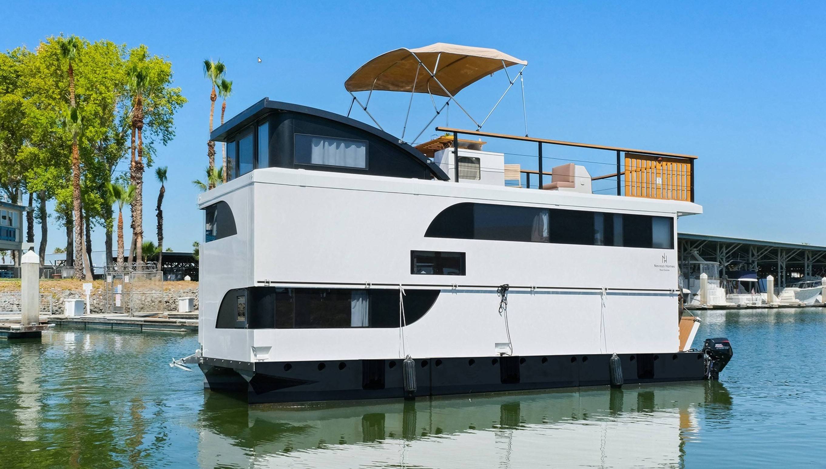 BIMINI & INTERIOR SHADES - Includes two biminis with aluminum frame and sliding blackout curtains on all windows except galley and front door.