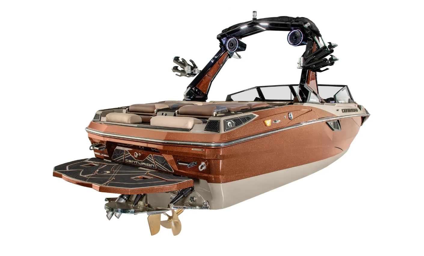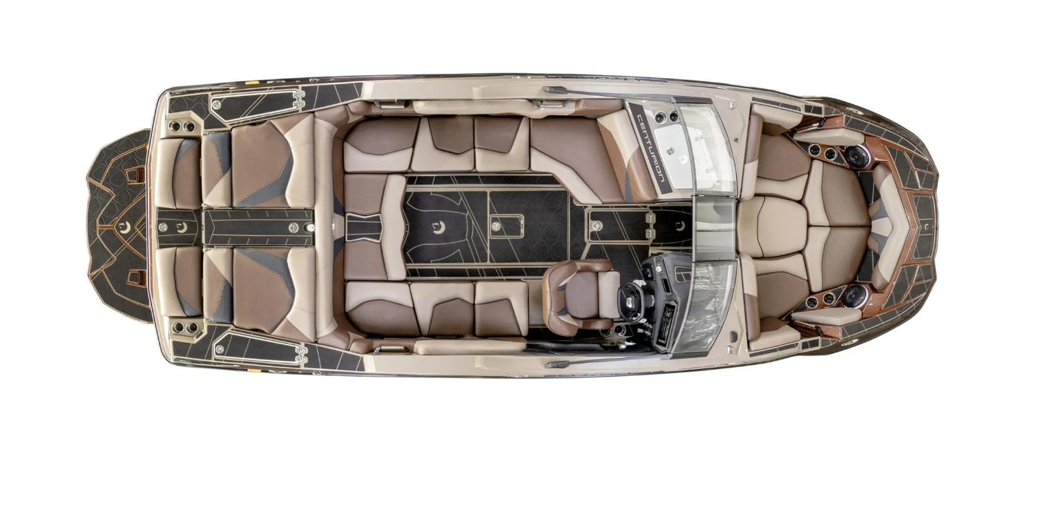 Gel Coat Scheme: Core | Hull Main Front: Rootbeer Metal Flake | Hull Base: Mocha | Swim Step: Rootbeer Metal Flake | Tower: DropZone Auto Tower | Tower Color: Black | Tower Accent: Rootbeer Metal Flake | Upholstery Scheme: Cool Touch | Upholstery Main: Mocha | Upholstery Base: Saddle Brown | Upholstery Accent: Onyx Black | Upholstery Welt: Onyx Black | Stitching Accent: Black | Dash Accent: Black | Interior Side Panel: Rootbeer Metal Flake | Gator Step Flooring Scheme: 2-Color Fearless Innovation Cut | 1st Color Top: GS Black | 2nd Color Bottom: GS Drift Wood | Stereo: Centurion Champ System by Wet Sounds | Speaker Color: Black