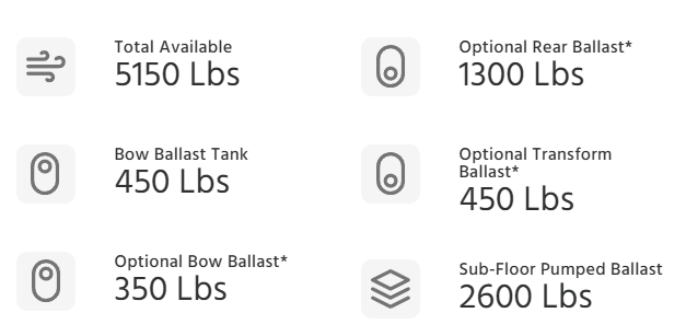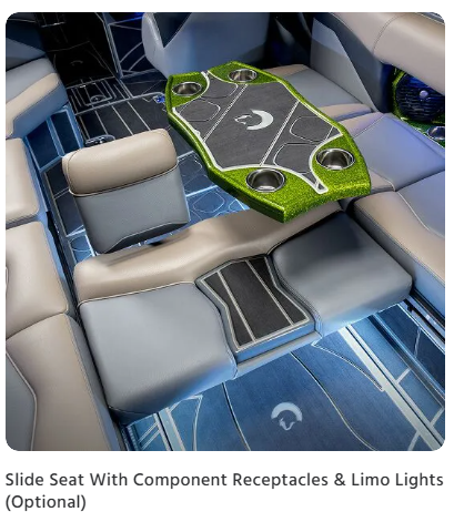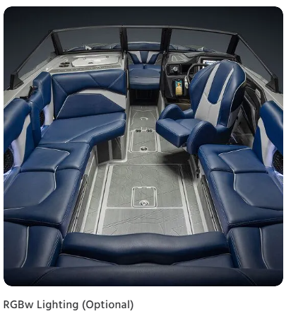 New for 2026, the standard ZZ5 5.3L engine with 400 lb-ft of torque pairs with the Acme 3077 4-blade prop for smooth, confident pulls, while the Fast Mover Ballast System featuring 13.5-gallon SeaFlo pumps fills quickly so you’re always ready to ride. The new Stinger Wake Plate with Lenco Smart Ram fine-tunes your wave, and the DropZone Auto Tower by Roswell folds and deploys effortlessly for garage storage or trailering. On board, the Hex Accent Upholstery, walkthrough trash shoot with receptacle, and Rhino-lined storage areas combine function and finesse.