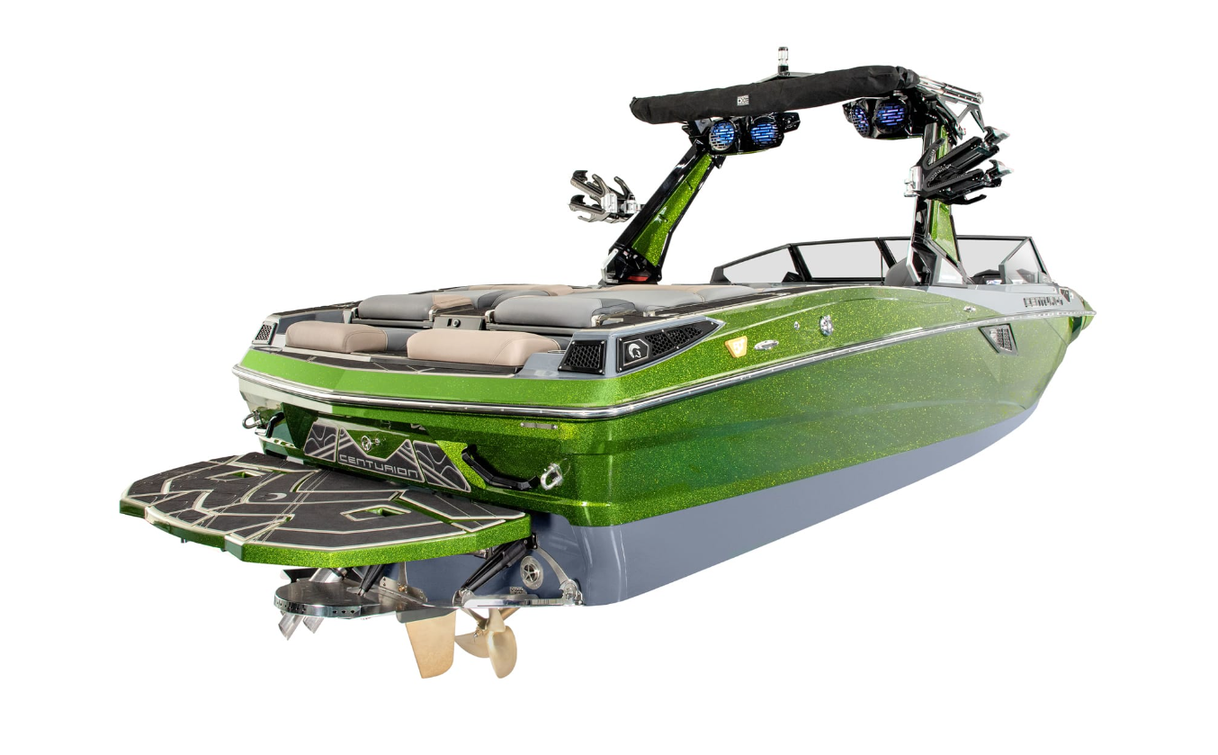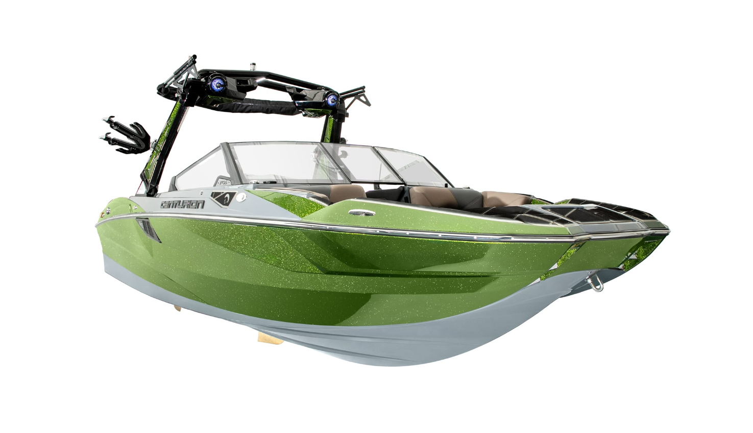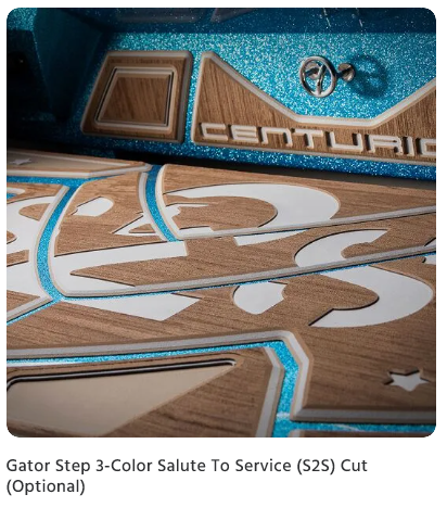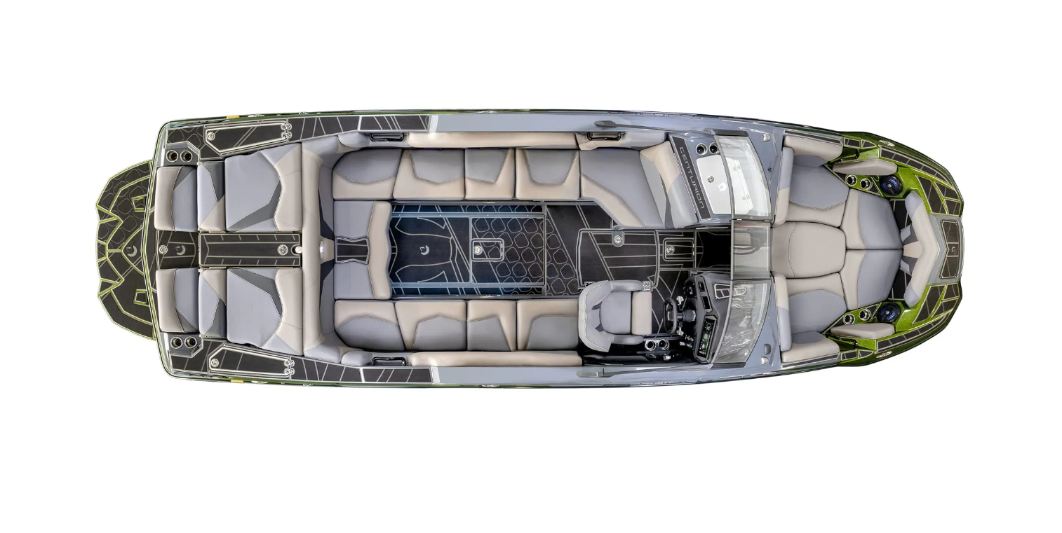 Gel Coat Scheme: Core | Hull Main Front: Military Green Metal Flake | Hull Base: Charcoal | Swim Step: Military Green Metal Flake | Tower: DropZone Auto Tower | Tower Color: Black | Upholstery Scheme: Cool Touch | Upholstery Main: Mocha | Upholstery Base: Charcoal | Upholstery Accent: Onyx Black | Upholstery Welt: Mocha | Stitching Accent: Black | Interior Side Panel: Military Green Metal Flake | Gator Step Flooring Scheme: 3-Color Fearless Innovation Cut | 1st Color Top: GS Black | 2nd Color Middle: GS Shark Fin | 3rd Color Bottom: GS Drift Wood | Stereo: Centurion CoverFire 2.0 by Roswell | Speaker Color: Black