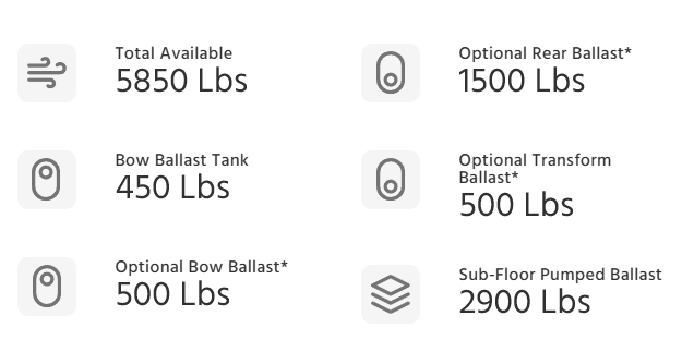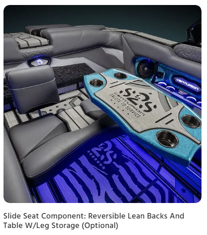 With deep, plush seating, intuitive control through the new 14" x 2 Captive Touch Side by Side High-Definition Dash System, and the available Predator Power Tower (PPT) with fixed bimini for all-day shade, the Ri265 balances power with polish. The Centurion ROV Dual HD Digital Camera & Fuel Usage System gives drivers total awareness and efficiency, while the Fast Mover Ballast System with high-capacity 13.5 and 30gpm SeaFlo pumps ensures you’re always ready to ride. The new RAMFILL Boosted system allows you to fill and drain the largest ballast areas in the Ri265 faster and even while sitting still. Add the QuickSurf Pro System with Smart Rams to instantly shape massive, symmetrical waves on either side with precision. Yacht certified and packing up to 5,850 pounds of available ballast, the Ri265 is more than a boat—it’s an all-day escape engineered for those who expect everything.